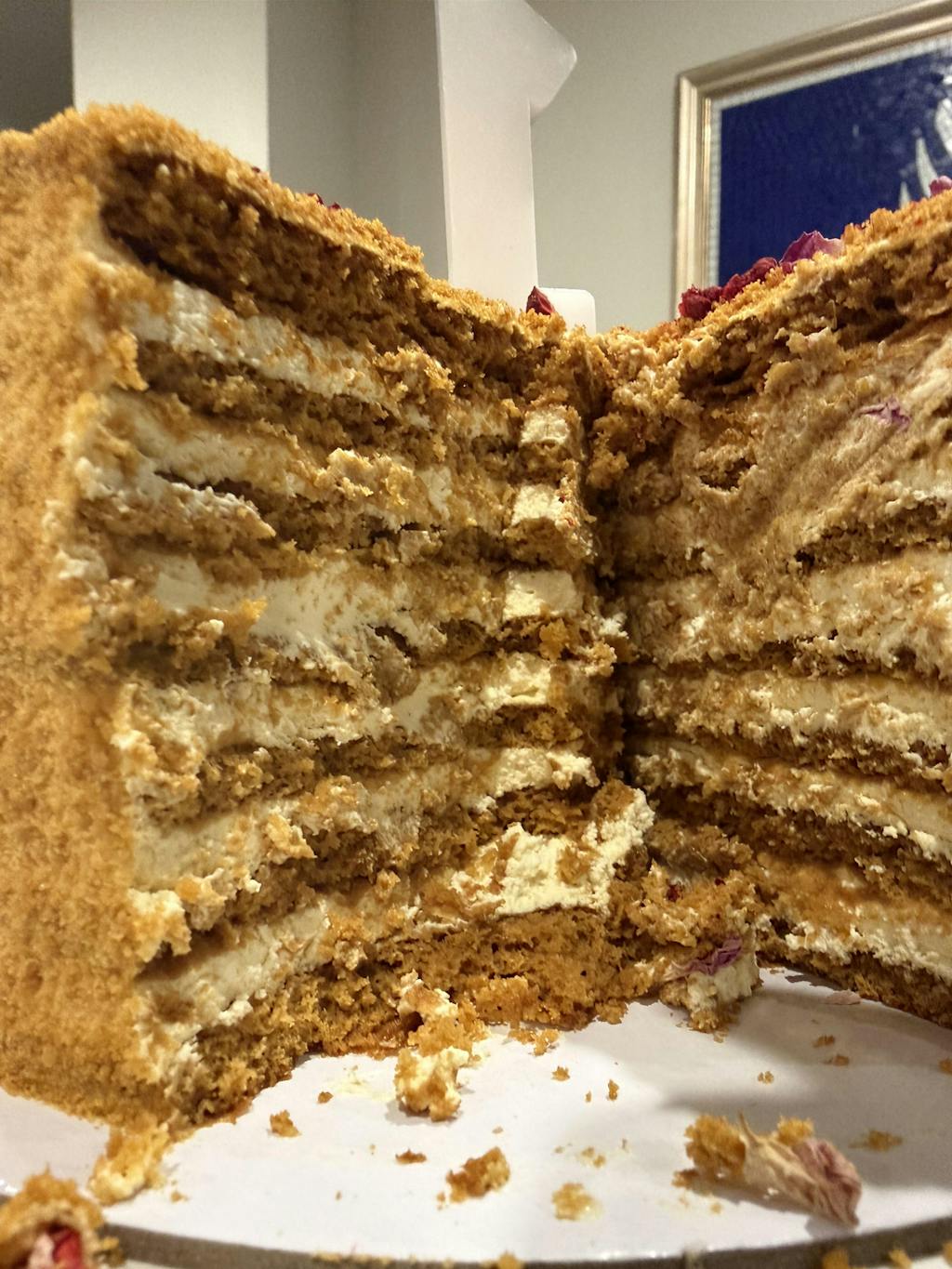 Beautiful soft layers withjust the right amount of sweetness. I was looking for a good tasty honey cake and so glad I found it. Really enjoyed. Cant wait to order again.